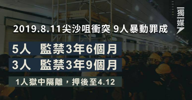 Sąd w Hongkongu skazał 5 osób na 3 lata 9 miesięcy oraz 3 osoby na 4 lata i 9 miesięcy za udział w zamieszkach 11 września w trakcie