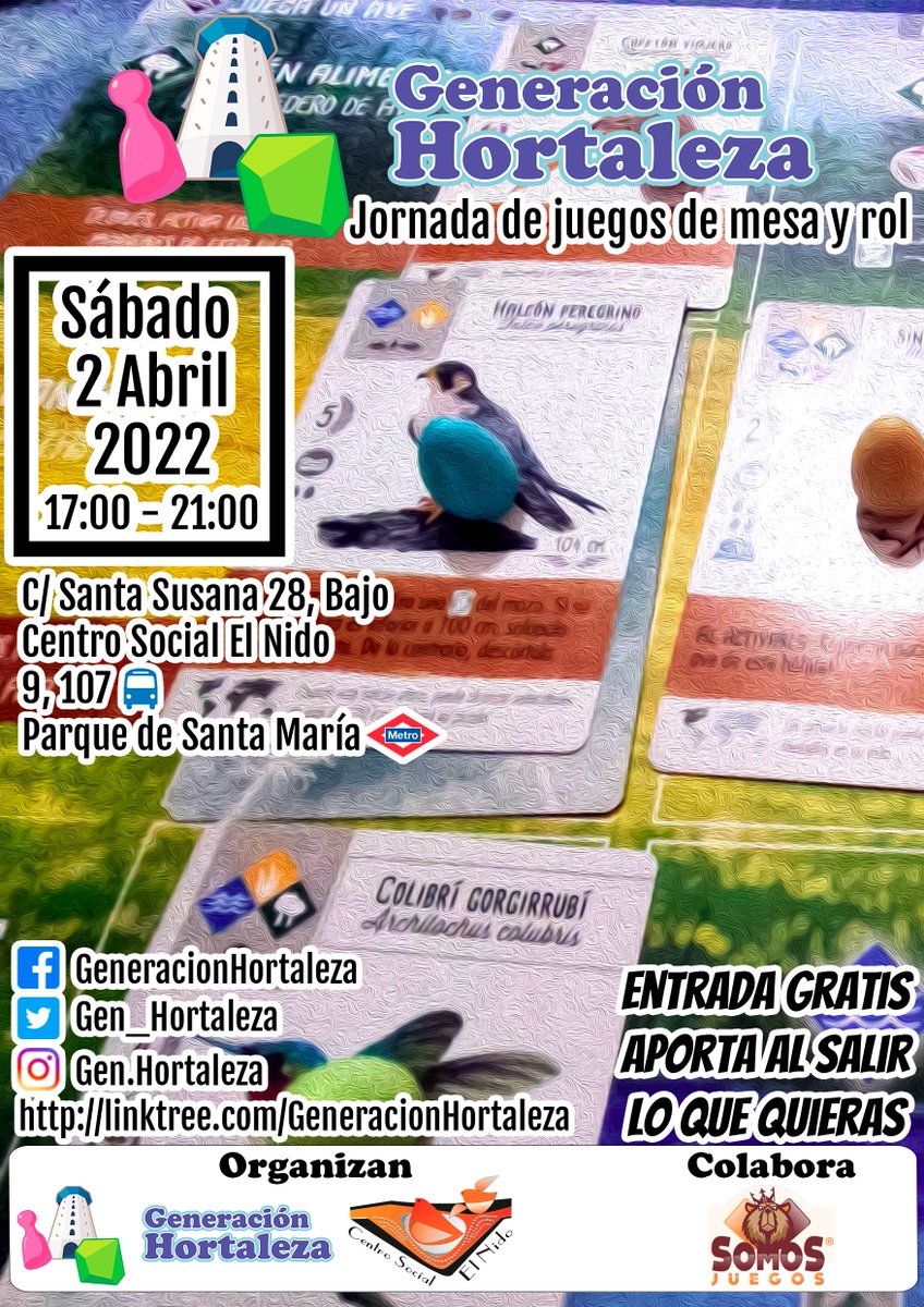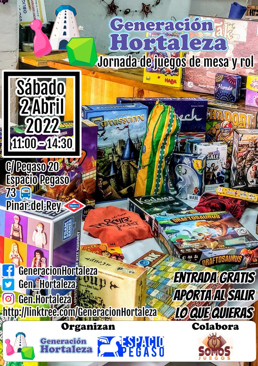 #HORTALEZA EL DÍA 2 DE ABRIL De 11 a 14 en@espacio_pegaso c/ Pegaso 20 De 17 a 21 en@CSElNido c/ Santa Susana 28 Entrada gratuita, aporta al salir lo que quieras#juegosdemesa#boardgames#Madrid#Ocio#gratispic.twitter.com/UxRPC2W52J