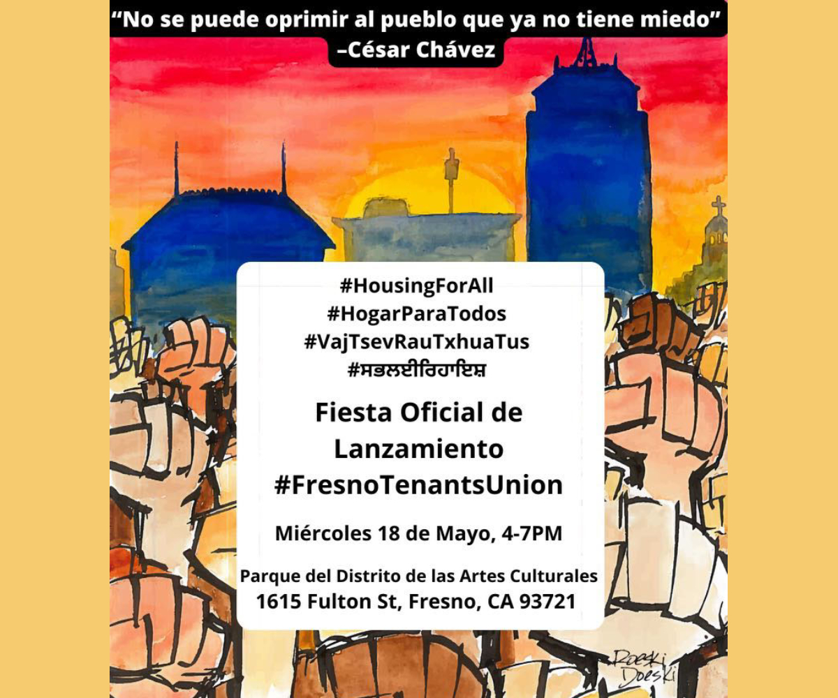 Happening Wednesday, May 18th! The Fresno Tenants Union is throwing a Launch Party for the community to begin discussing the needs and changes folks want to see in Fresno's housing system.