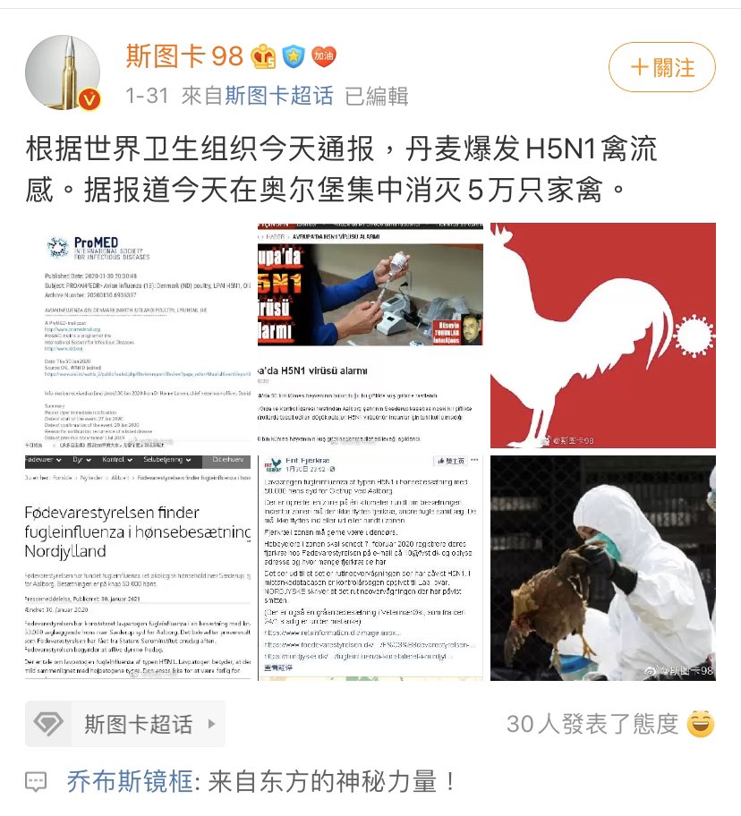 #chiNazi people laughed about H5N1 outbreak in Denmark. Then within one day,#CCPChina had the same outbreak in#Hunan. What a boomerang ! pic.twitter.com/JakFkpjv29