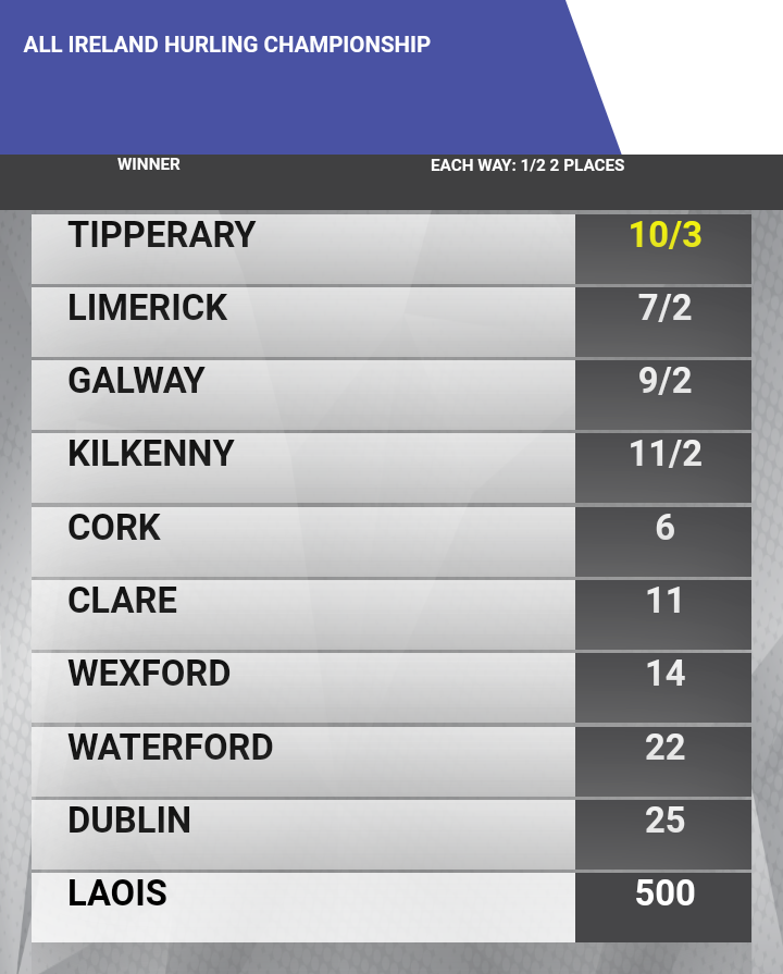 All Ireland Hurling Outright Betting