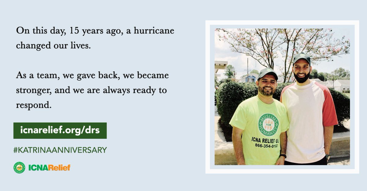 Today is the 15th anniversary of Hurricane Katrina. Today, ICNA Relief is now responding to another Hurricane Laura in Louisiana. Thank you to Omar Suleiman for always helping us out!