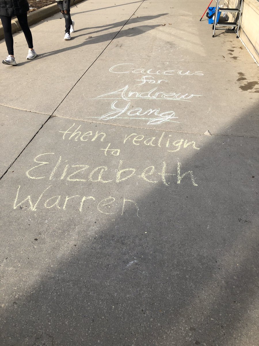 And here’s the bus shot. Yang is streaming across the state today in a way that other candidates are not. Unclear if the effort will pay off tonight.