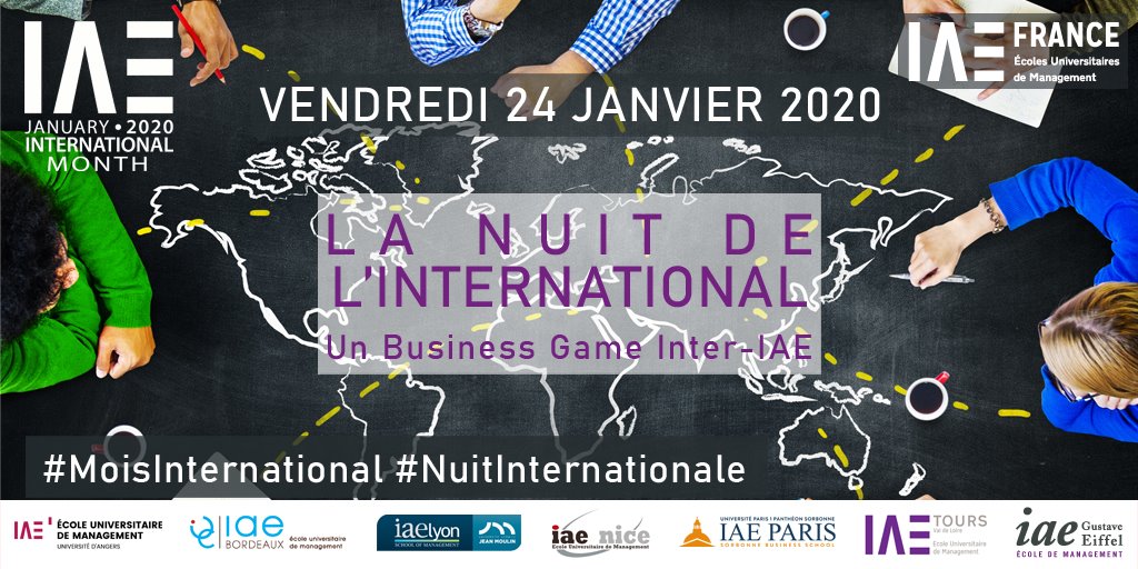 #NuitInternationale#IAEFRANCE, avec la participation des#IAEAngers (@UnivAngers),@iae_bordeaux,@IAE_G_Eiffel,@iaelyon,@IAE_Nice,@iaeparis et@IaeTours.#MoisInternational#International#IAEAroundTheWorldpic.twitter.com/YxFN9UwQJy