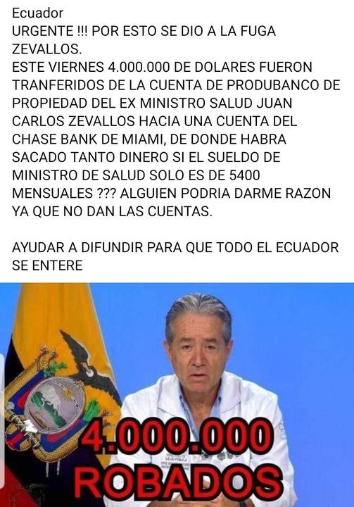 Revisen la fuente.. X lo menos de Ecuador no es esa foto (revisen números de teléfono en letreros).. Ahora si en vez de estas cosas investigan