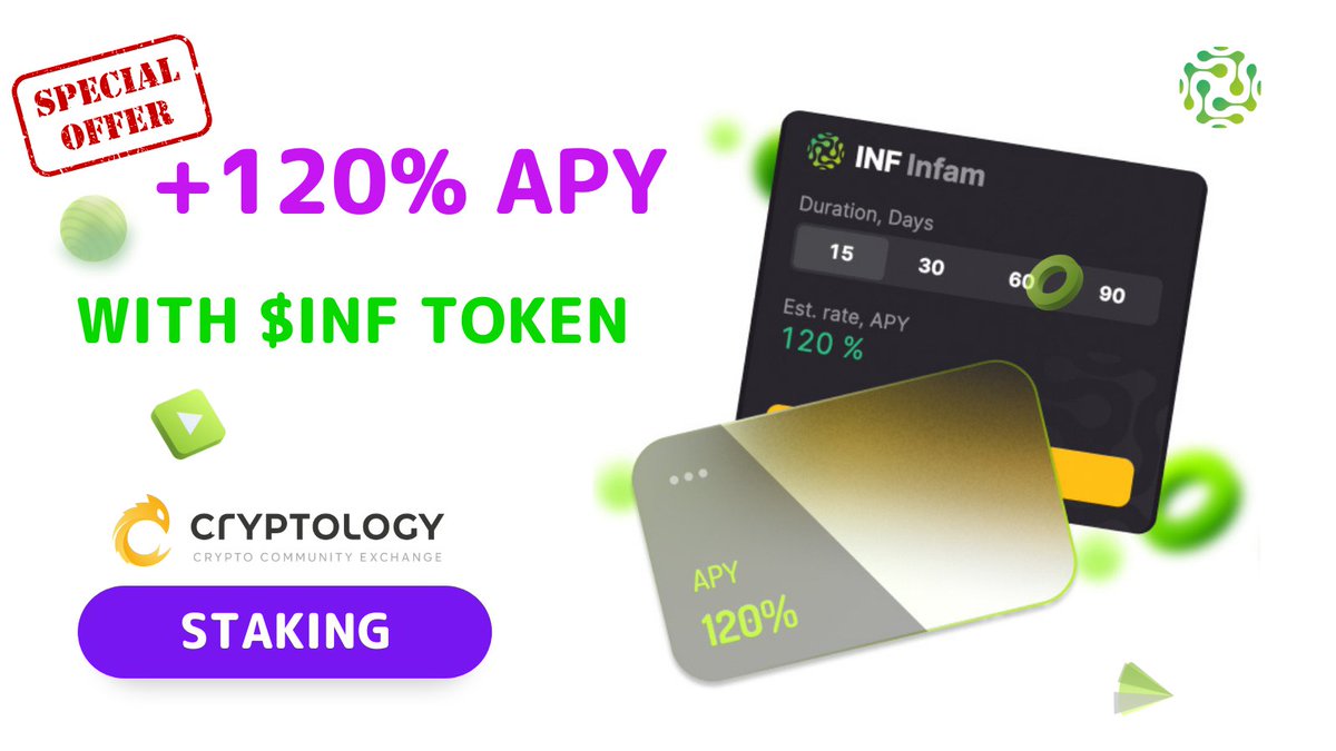 Stake $INF on@Cryptologyexch at a record rate of 120% APY