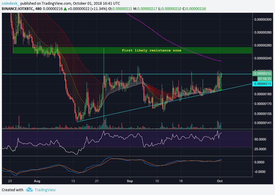 #IOTX/BTC#IoTeX US Snapshot Outlook: Nearing bull break Price is testing ascending triangle resistance (1D close above to confirm bullish) 8HR guppy flipping green for 1st time since listed on Binance (June 4th) After confirmed bull break - 1st resistance zone ~0.00000251pic.twitter.com/VVT9XDZjqI
