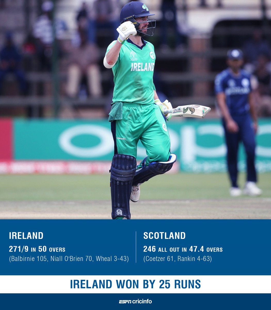 Scotland were bowled out for 246 and Ireland won by 25 runs. They have done Zimbabwe a favor to remain on top of the table!