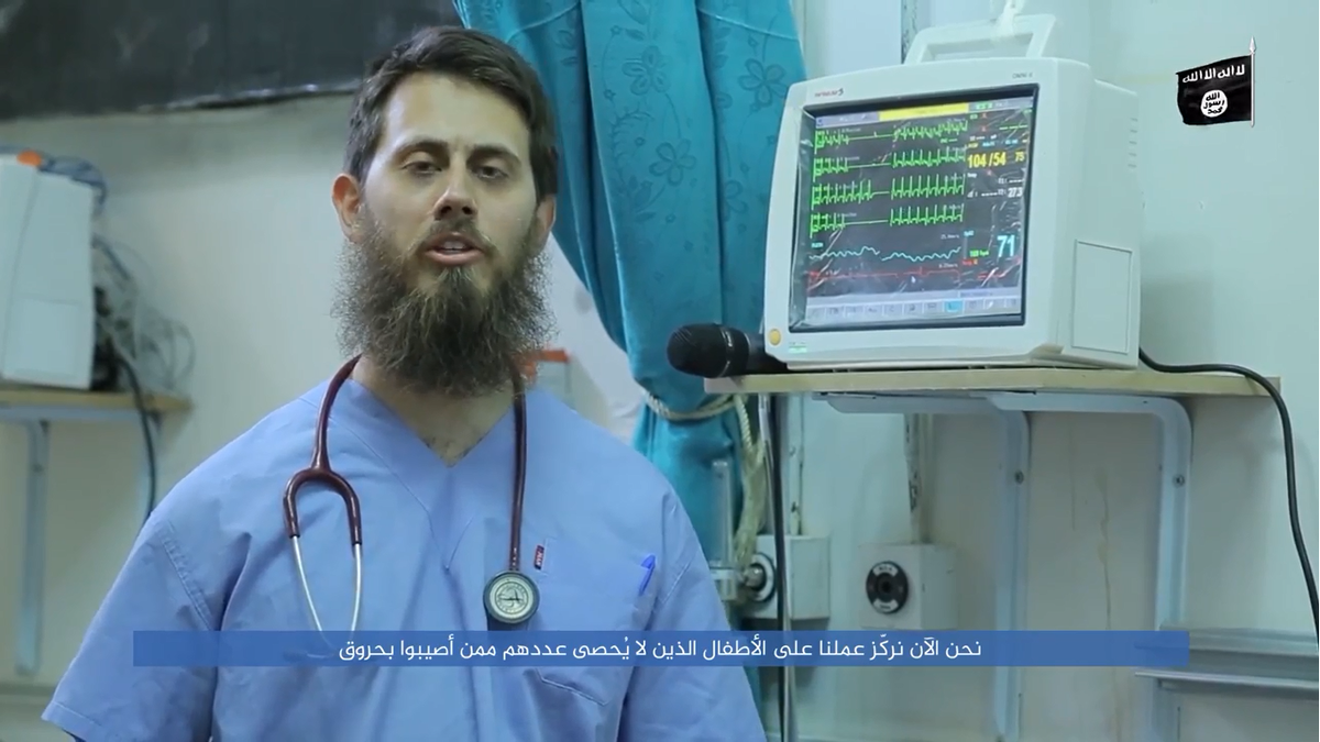 #IS video feat. doctor Abu Yusuf from#Australia talking about victims, telling#Trump that they're happy with US soldiers on the groundpic.twitter.com/uyuXcx46cT