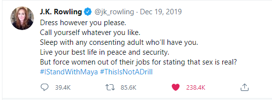 Amazing and cockle warming coincidence to hear this verdict on JK Rowling Day, possibly soon to be renamed after only one year to JKRowlingandMayaForstater Day