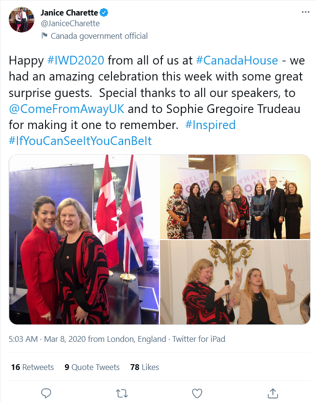 #WECharity pre-cleared by the Ethics Commissioner? Also, she was in London, England that week for more than one reason:#IWD2020, a big deal in its own right.