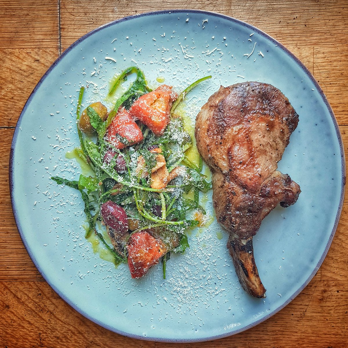 @Pat_Whelan with a warm charred tomato, olive and rocket salad! Not just saying this, but that was one of the best things of ever eaten, and it had nothing to do with my cooking. Those pork chops are insanely good!!!#ibericopork#bbqporkpic.twitter.com/nW6j7N1h1U
