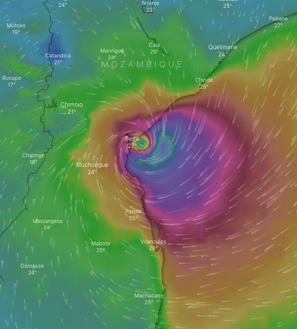 #Eloise approaching#Mozambique! In#Beira, heavy rains & strong winds observed. Unfortunately, in its projected path in the districts of Nampula, Sofala & Zambezia reside +93,000 IDPs in resettlement sites. They were already displaced by#Idai almost 2 yrs ago! pic.twitter.com/hoop2bHNke