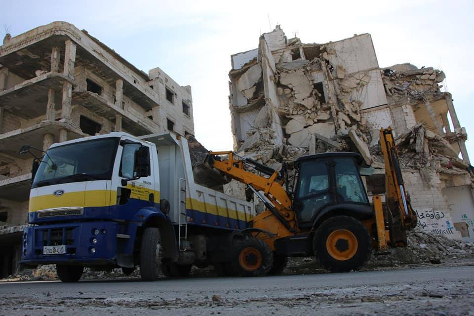 #WhiteHelmets in several cities near#Ariha City in#Idlib, with the aim of opening the main roads and removing the mountains of rubble resulting from Russian and regime bombing, in conjunction with the return of the people to their homes. pic.twitter.com/4TWFje524C