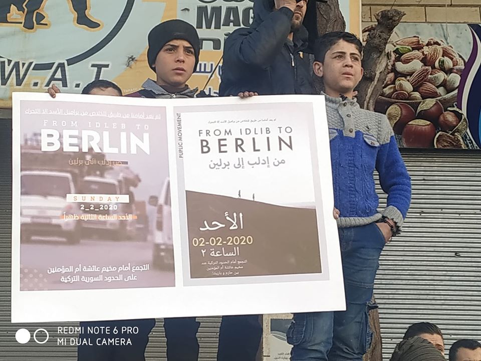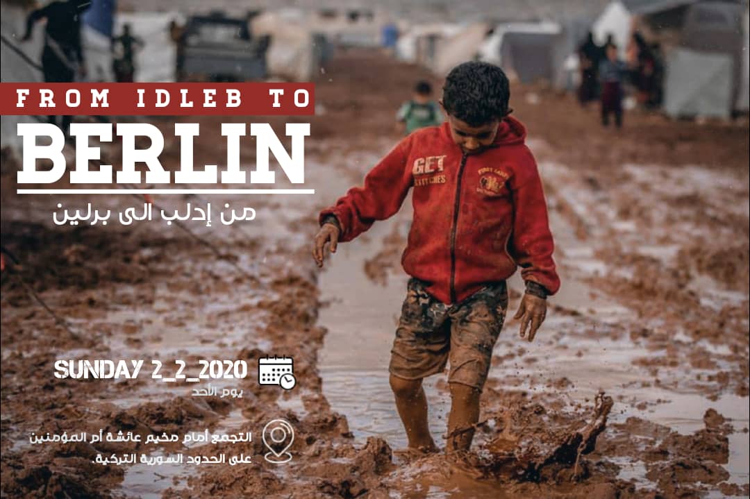 #Idlib launched the campaign From#IdlibToBerlin because they either die under bombing or cross over to Europe. Protests to be held tomorrow 2-2-20 Details on FB @ http://from.idlib.to.berlin pic.twitter.com/xlP6aNo1Gc