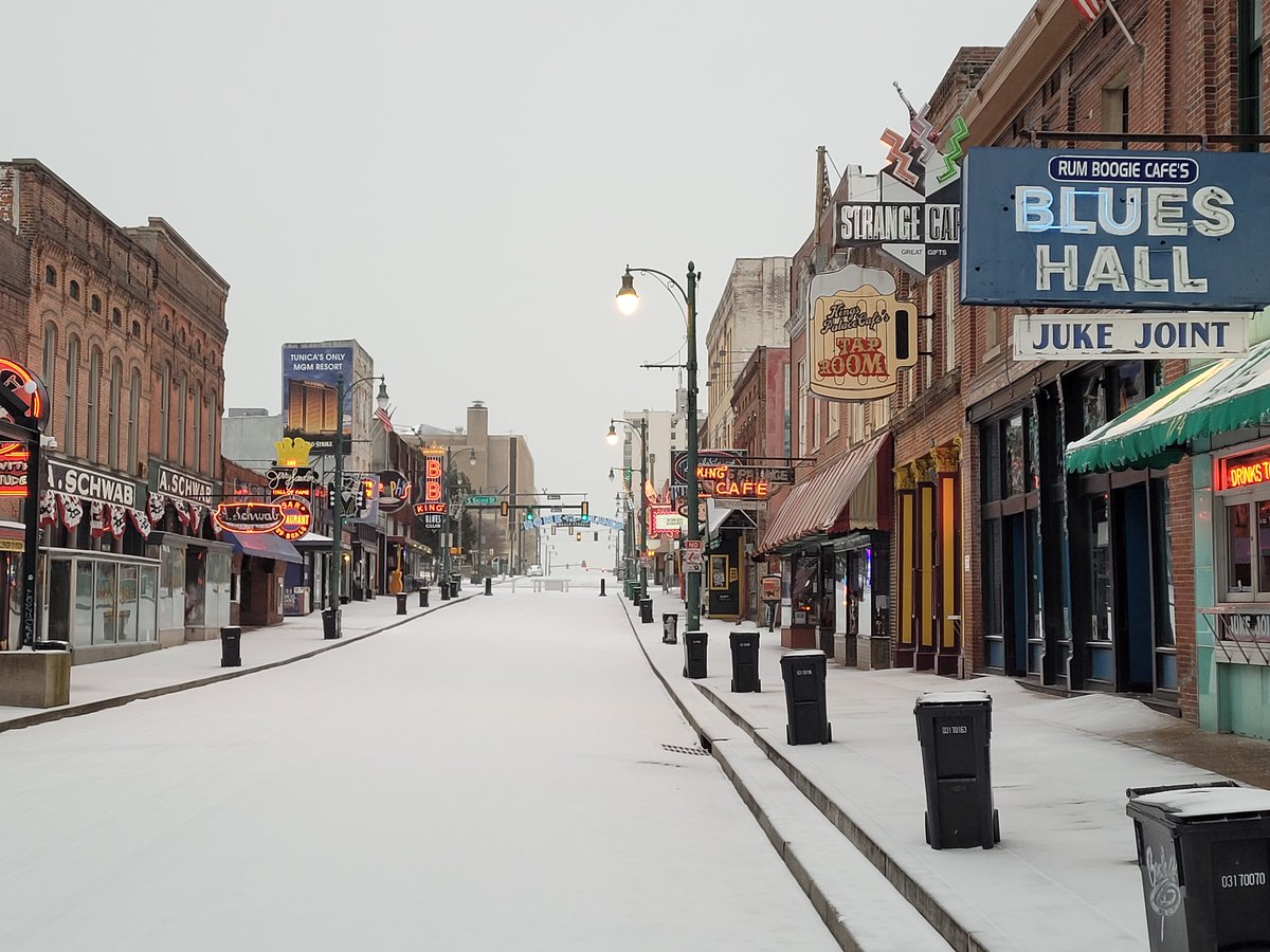Beale Street in Memphis seriously looks like a movie set! Very heavy snow about to arrive! We're LIVE on