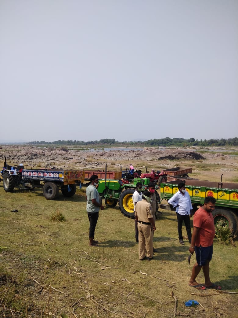 #illegally collecting and transporting#sand from#godavri in#jannaram.@cpramagundam@TelanganaCOPs@jannaramps_rgmpic.twitter.com/pGU8pDeBNZ
