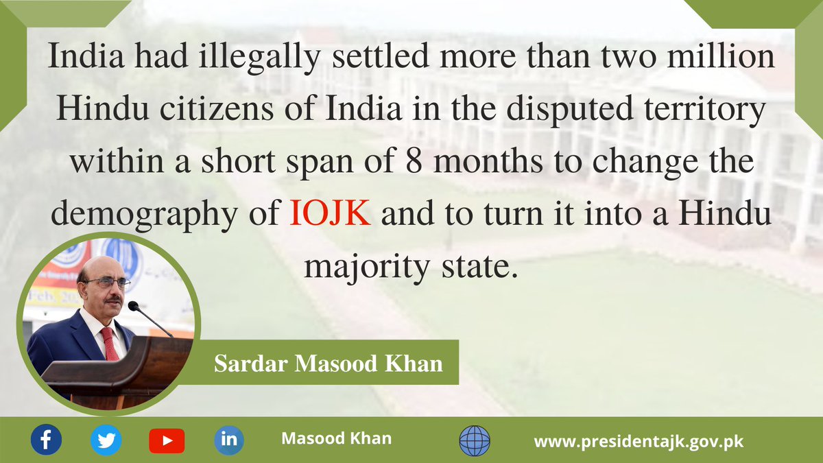 #illegally#settled more than two#million#Hindu citizens of India in the#disputed#territory within a short span of 8 months to change the#demography of#IOJK and to turn it into a Hindu#majority#state. 2/3 pic.twitter.com/yZ0XfKduk5