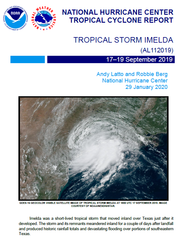 #Imelda (September 17-19, 2019), which produced historic rainfall totals and devastating flooding across southeastern Texas last year, has been posted on the NHC website: https://www.nhc.noaa.gov/data/tcr/AL112019_Imelda.pdf …pic.twitter.com/UwUUU6spVN