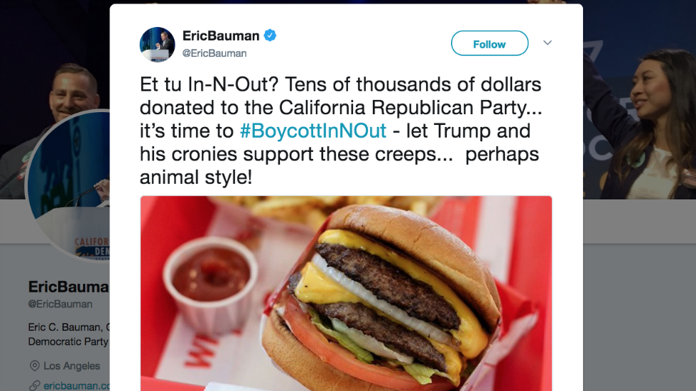 #InNOut gave $80,000 to a PAC that elects pro-business Democrats in our state last year which is $65,000 MORE than they gave to CAGOP this year. I am not boycotting our proud, homegrown establishment over this.Show this thread -