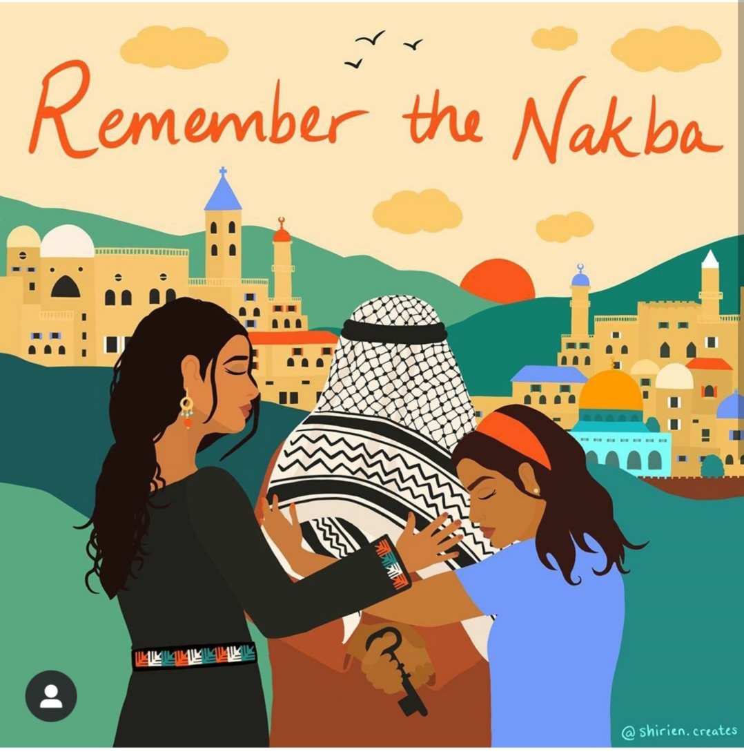 The Nakba refers to the systematic ethnic cleansing of one-third of the Palestinian population at the time by Zionist paramilitaries between 1947-1949 and the near-total destruction of Palestinian society which is still ongoing today