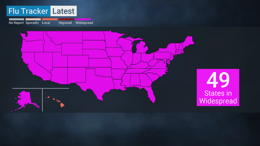 The latest influenza update from the CDC. Influenza is considered to be "Widespread" in PA, NJ, and DE.