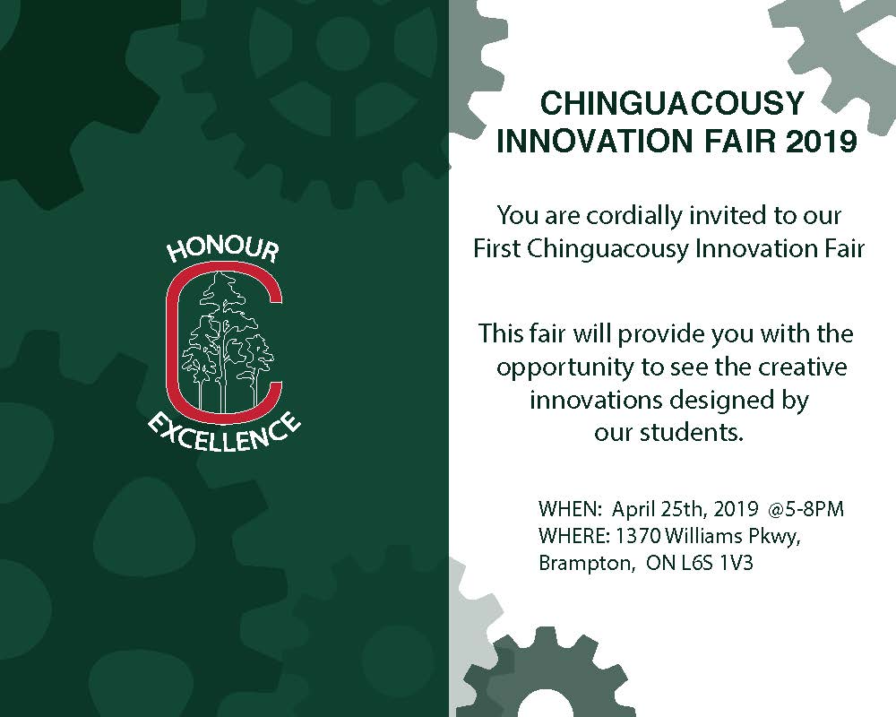 Chinguacousy Secondary Innovation Fair is this Thursday April 25th, don't miss it.