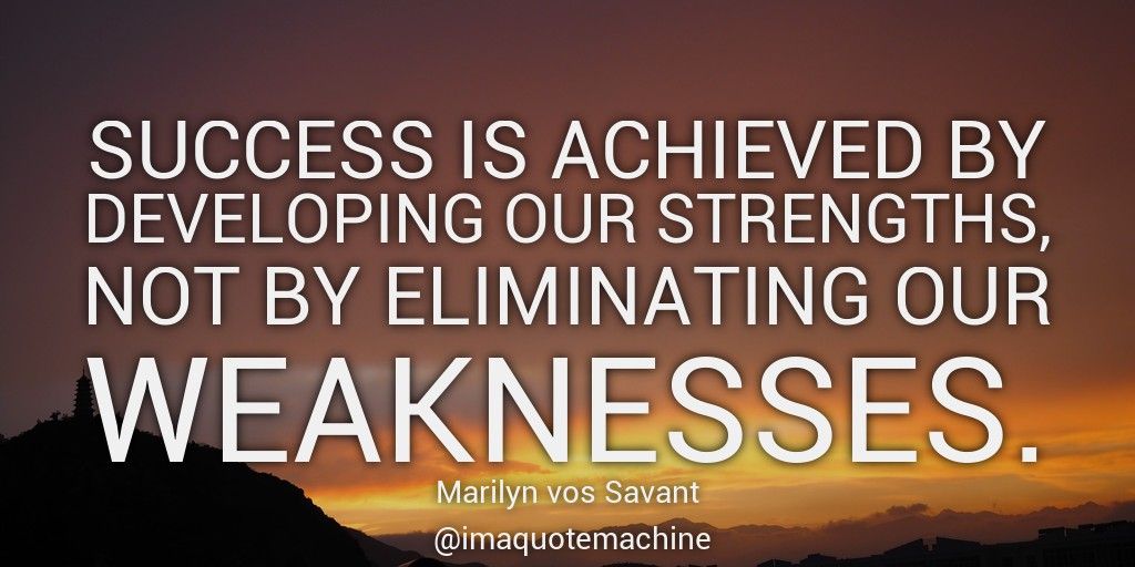 Success is achieved by developing our strengths, not by eliminating our weaknesses. - Marilyn vos Savant