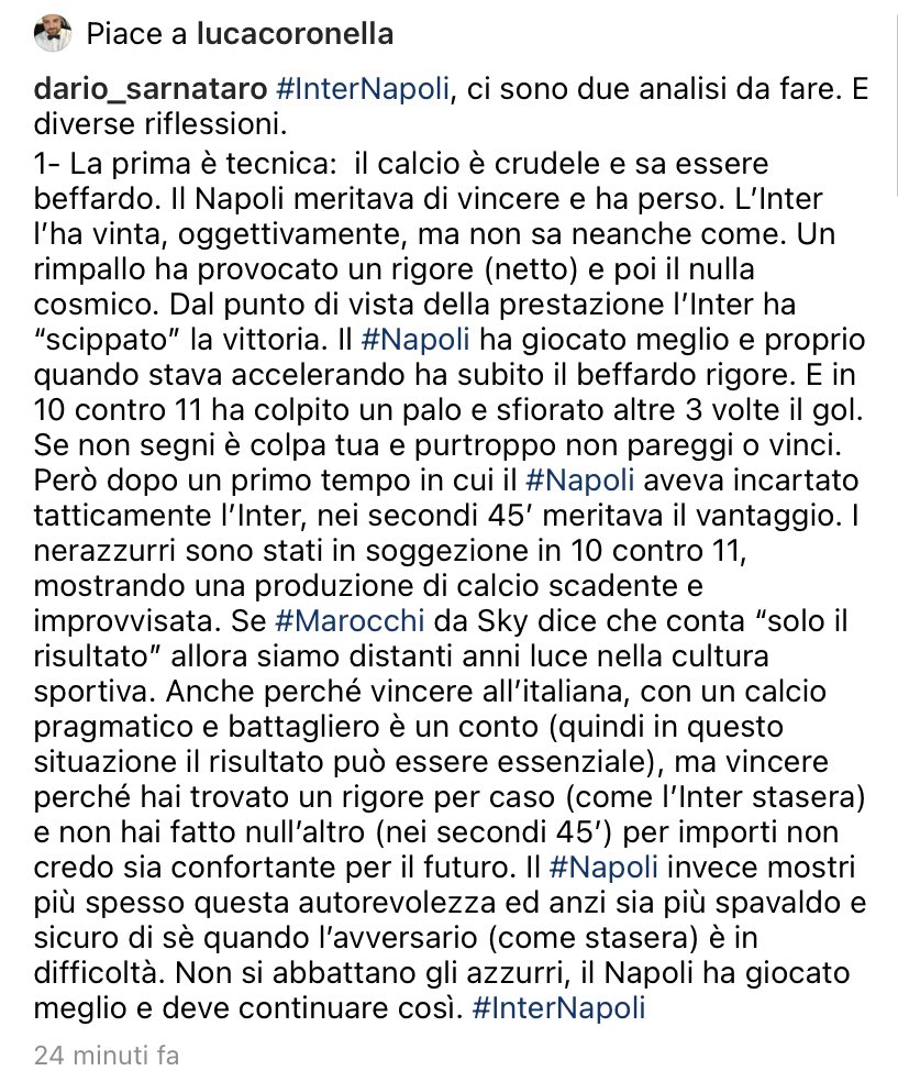 | #Gattuso: “Fuimos superiores al Inter. La expulsión de Insigne fue absurda".#InterNapoli 1-0#ForzaNapoliSempre