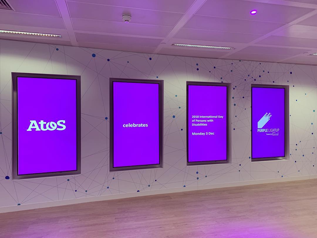 @cindygallop@PurpleLightUp: 3rd Dec.=great day at the#PurpleLightUp event for#InternationalDayOfPeopleWithDisabilities–chatted all things#Ability+#creativity@Atos. Thanks to@NeilMilliken for the invite+to@VikkiRossWrites for joining us!#ThisAbility#Disability#IDPD2018pic.twitter.com/vrygRZxgHP