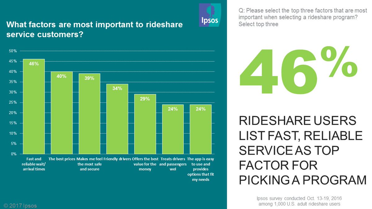 Speed/reliability, price and safety are most important factors for rideshare users in survey for