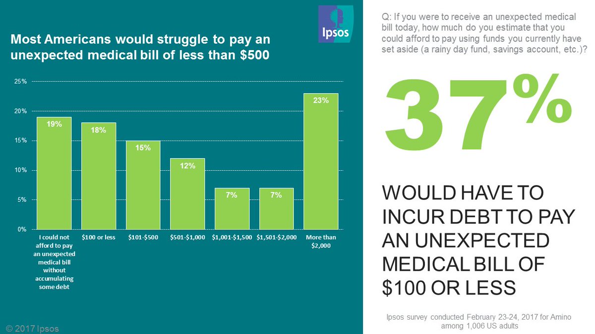 An unexpected medical bill of just $100 would force 37% of Americans to take on debt