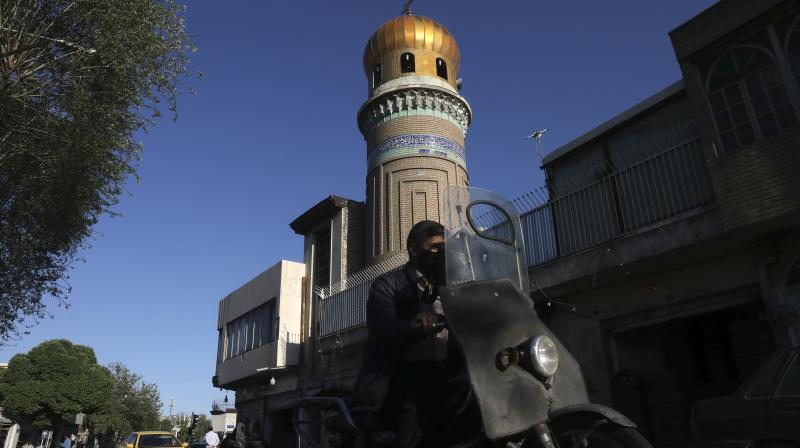 Iran on Saturday reported its lowest daily toll of new infections since March 10 A man drives past a mosque during the Muslim holy fasting month of Ramadan, in southern Tehran.