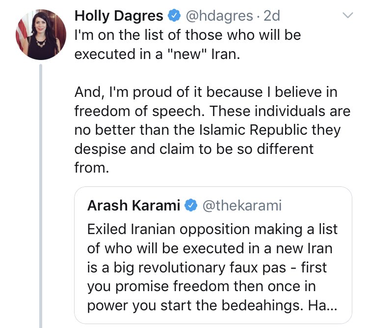 #Iranian opposition that I’m aware of condones violence. They do, however, advocate for justice. As for freedom of speech, the leftist media has taken that away from ordinary people & given it to the likes of you. So enjoy! pic.twitter.com/Nl15MmSQz8