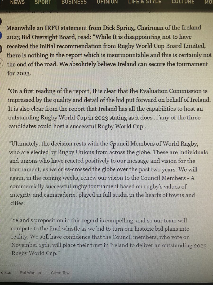 Still shocked at the first stage decision not to award the 2023 Rugby World Cup to Ireland.