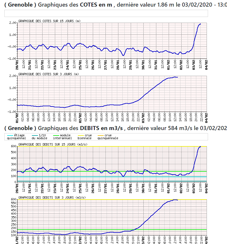 Avec les températures positives jusqu'à 3500m, l'importante fonte des neiges et les pluies des derniers jours entraînent une forte réaction de l'