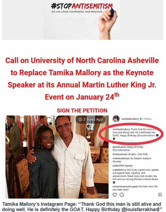 #MartinLutherKingJr Event on Jan. 24 at the LIPINSKY AUDITORIUM. MLK was a great supporter of#Israel and the#Jewish people. Tamika is an#Antisemite https://www.stopantisemitism.org/current-petitions/unc-asheville/ …pic.twitter.com/CGUSk3TUW8