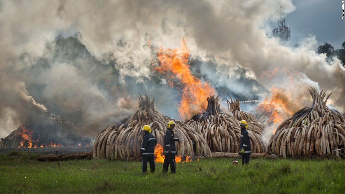 #ivoryBurn. It’s 3.2 billion Ksh worth of tusks (105 tons elephant,1.3 tons rhino). Meanwhile, poaching continues. Elephants maybe extinct by 2030. I never supported the burn ... it was a PR stunt that didn’t address the core issues. pic.twitter.com/lGAxFoZUe3