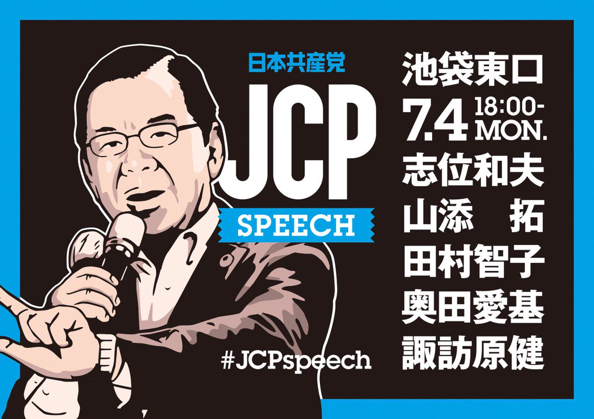 #JCPspeech 本日夕方、池袋駅東口です! 参院選でどこへ投じるか迷っている方、選択肢として共産党がちょっと気になるという方、学校帰り、お仕事帰りなど、お気軽にお立ち寄りください♫ pic.twitter.com/R7dCWatTDf