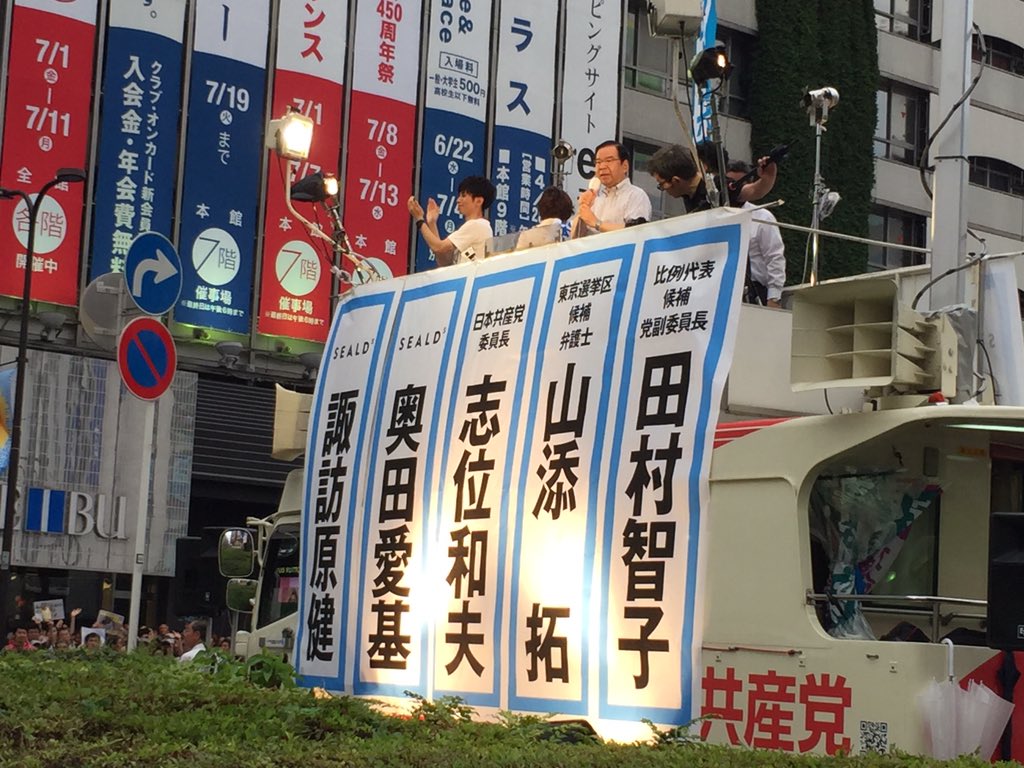 #JCPspeech @池袋東口 18:00~ 志位和夫・山添拓・田村智子・奥田愛基&諏訪原健 from SEALDs I 山添 拓 参議院東京選挙区候補 日本共産党http://www.yamazoetaku.com/schedule/1035 pic.twitter.com/h6CFKcYMHk