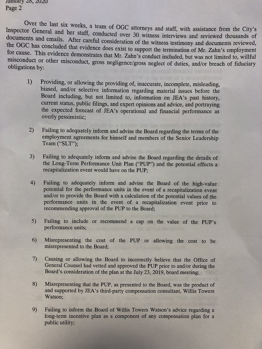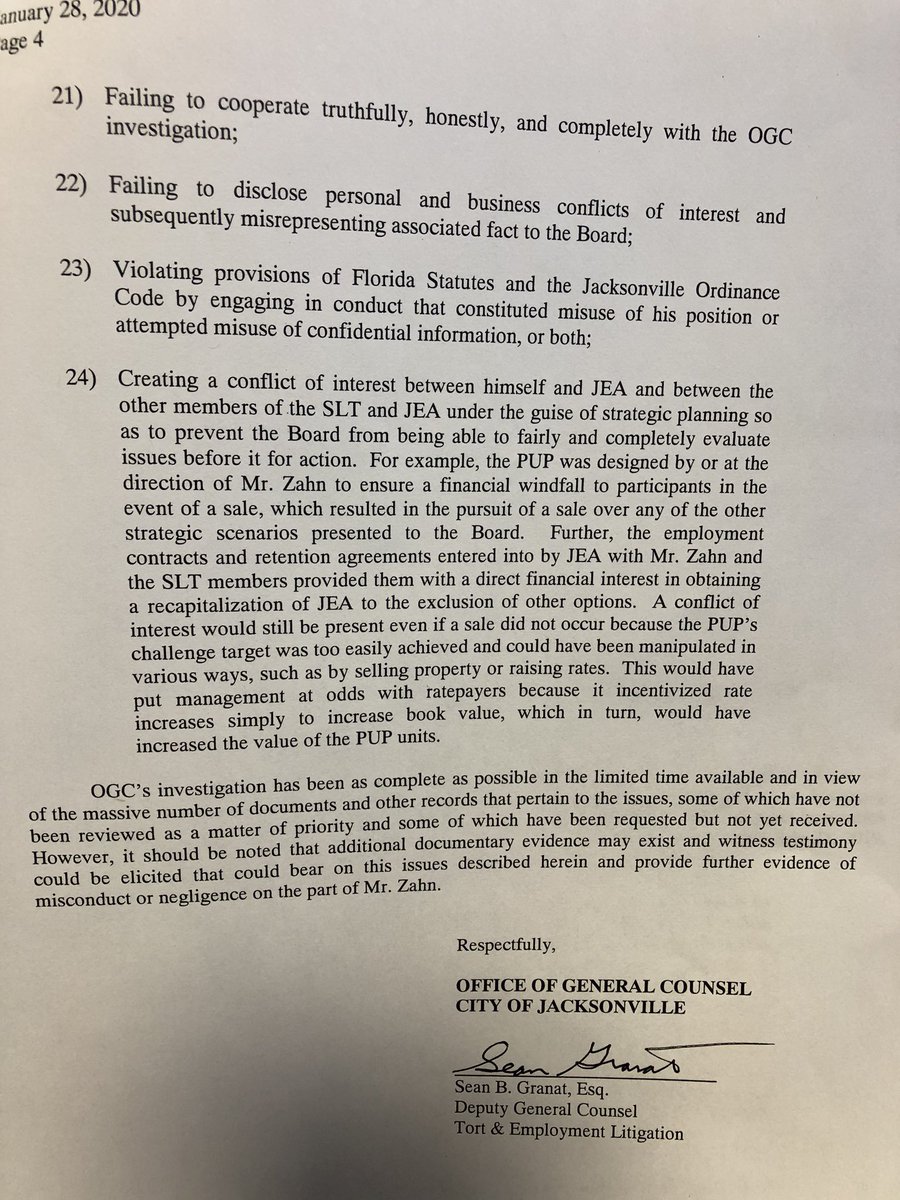City Office of General Counsel says it found negligence, evidence that JEA CEO Aaron Zahn allegedly doctored a presentation slide. Zahn's attorney releases statement. https://www.jaxdailyrecord.com/article/jea-managing-director-and-ceo-aaron-zahn-fired-with-cause …
