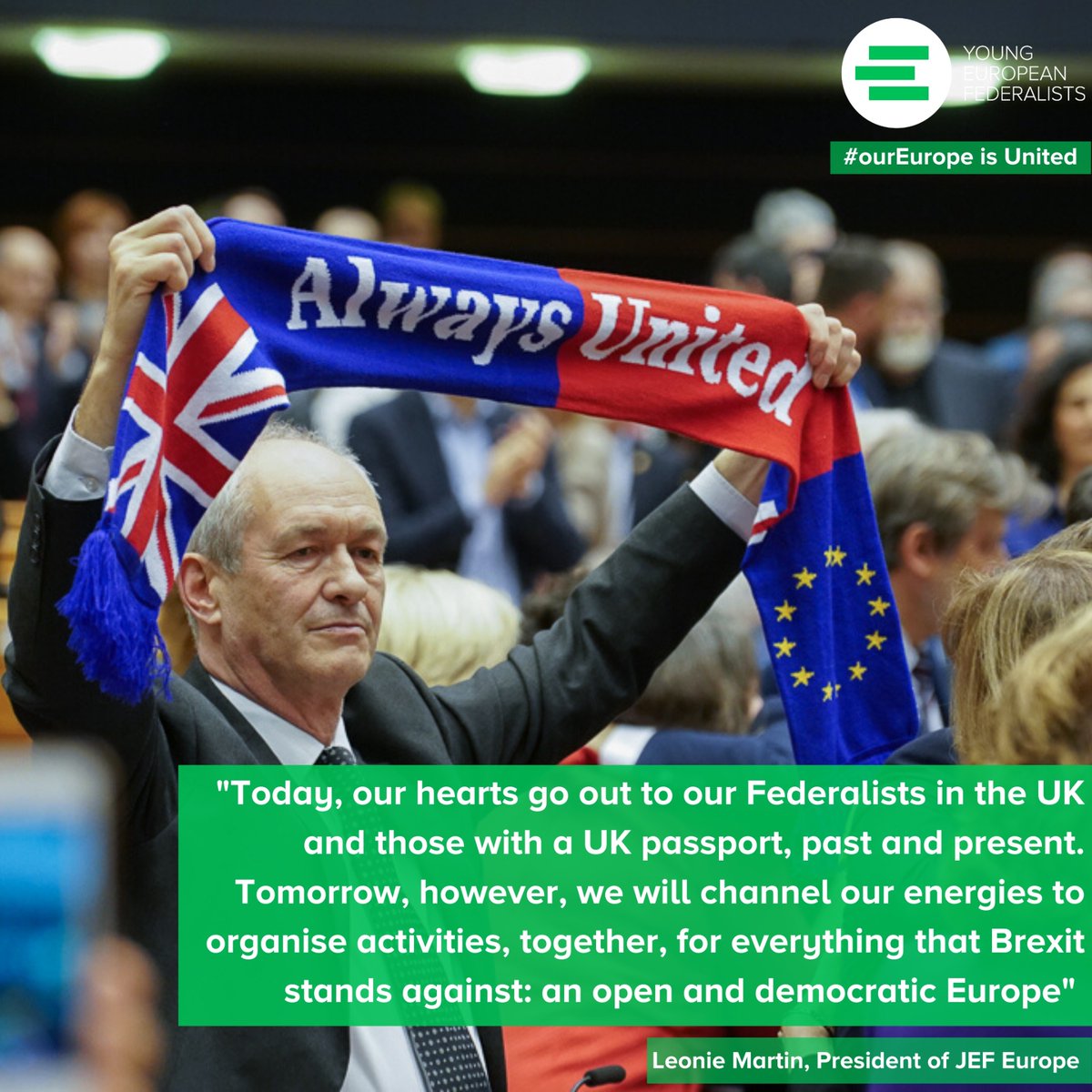 @youngeuromove today, as it's UK's last day in the European Union. We will always work together with you, in order to cherish the Federal#JEFSpirit. https://twitter.com/JEF_Europe/status/1223187848406413314 …