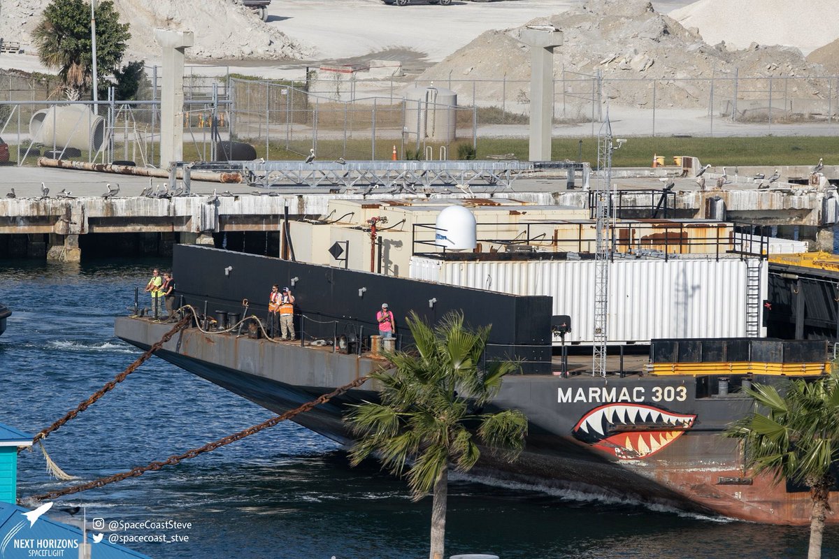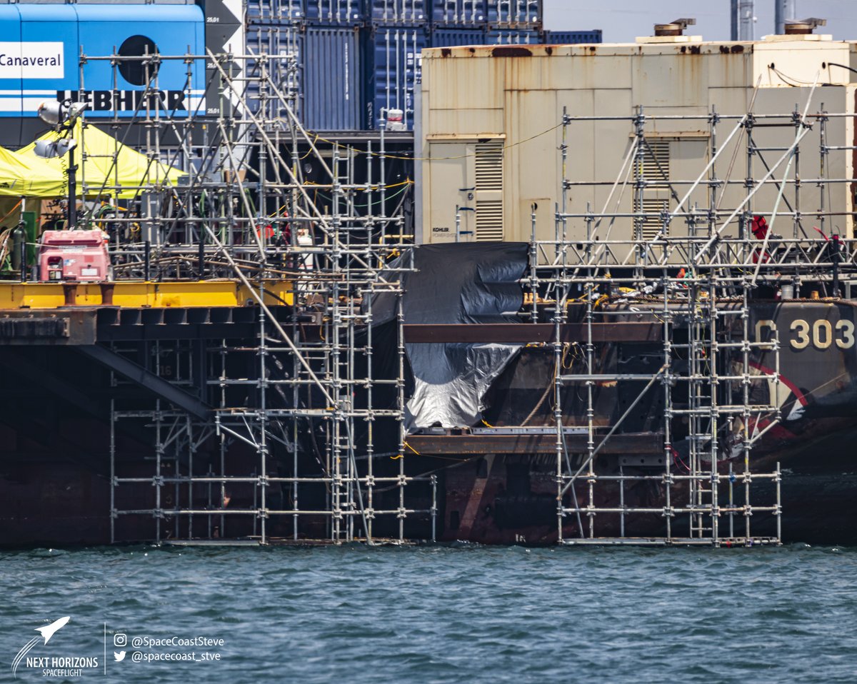 @PortCanaveral! We now have 2 East Coast droneships! You can see lots of stuff on the deck, including 6 new massive thrusters for station keeping.#JRTI#SpaceXFleetpic.twitter.com/f7vZ2ymKyN
