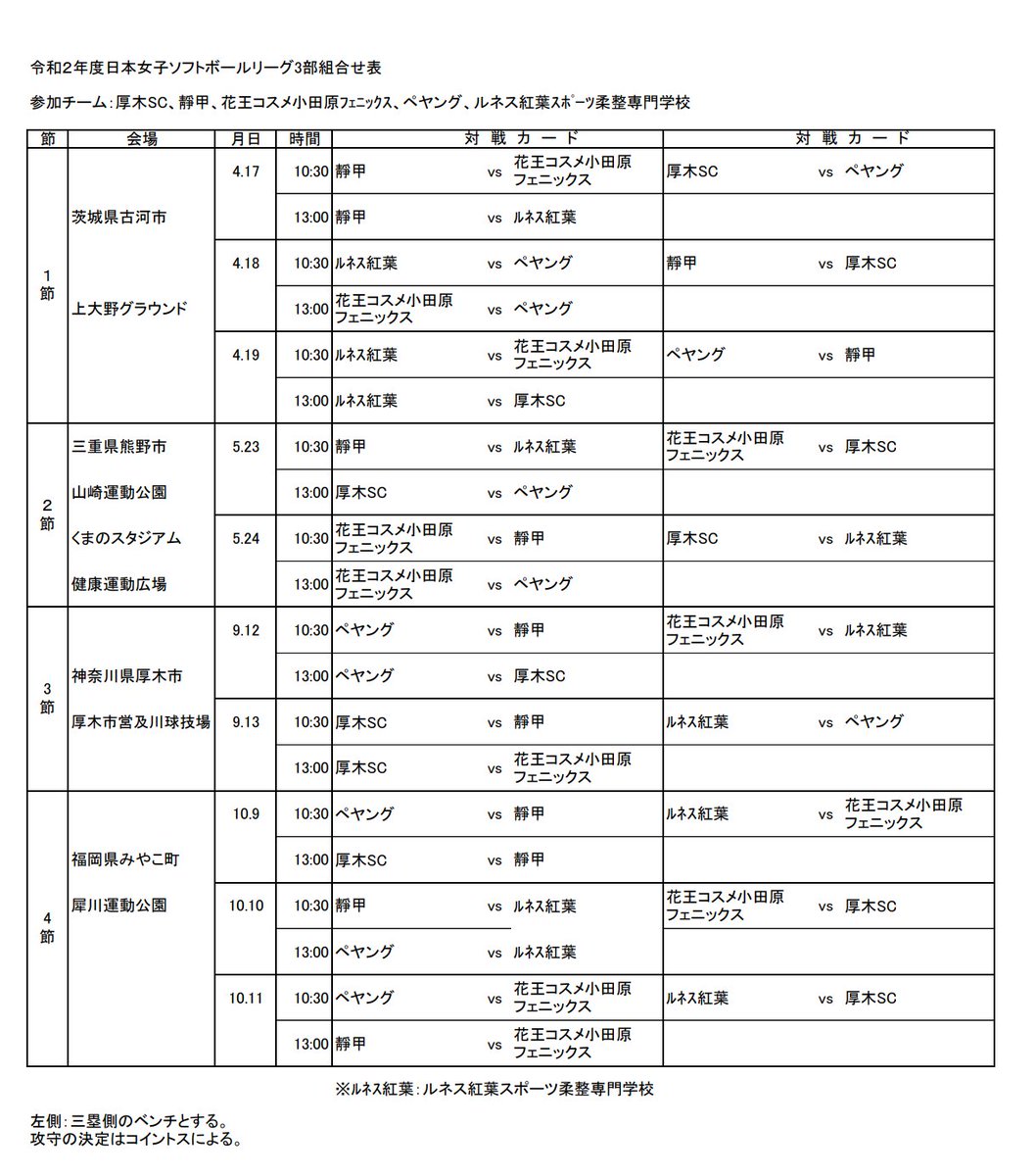 2020年度第53回日本女子ソフトボールリーグ1部・2部・3部の組み合わせが決定