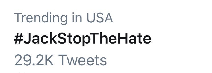#JackStopTheHate is already trending in the USA! Let’s keep it up and make this hashtag go truly viral!! pic.twitter.com/NMeVQzFS5e