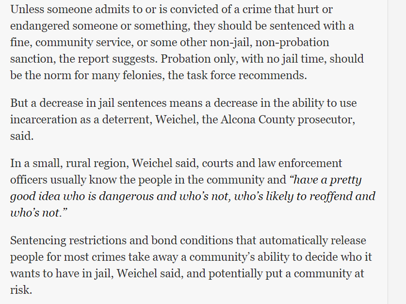 When you wonder why many of us are flabbergasted by the things prosecutors say....read what this Michigan prosecutor said about the recommendations of the Michigan Task Force on Jail and Pretrial Incarceration