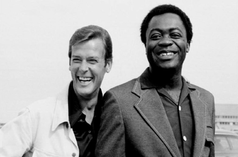 Roger Moore, as bond, and Mr Big/Kananga, on-set in 'Live and let die'