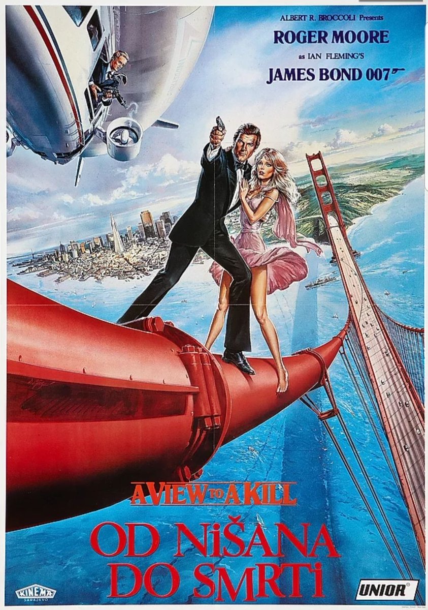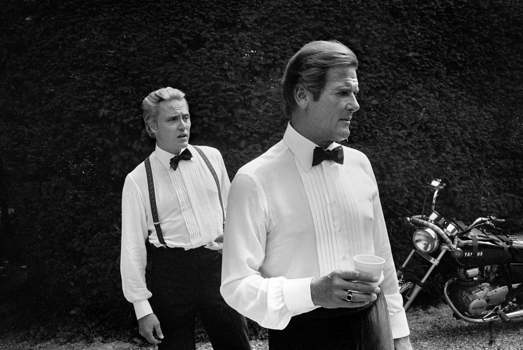 Roger Moore, as bond, and Christopher Walken (Zorin), on-set in 'A view to a kill'