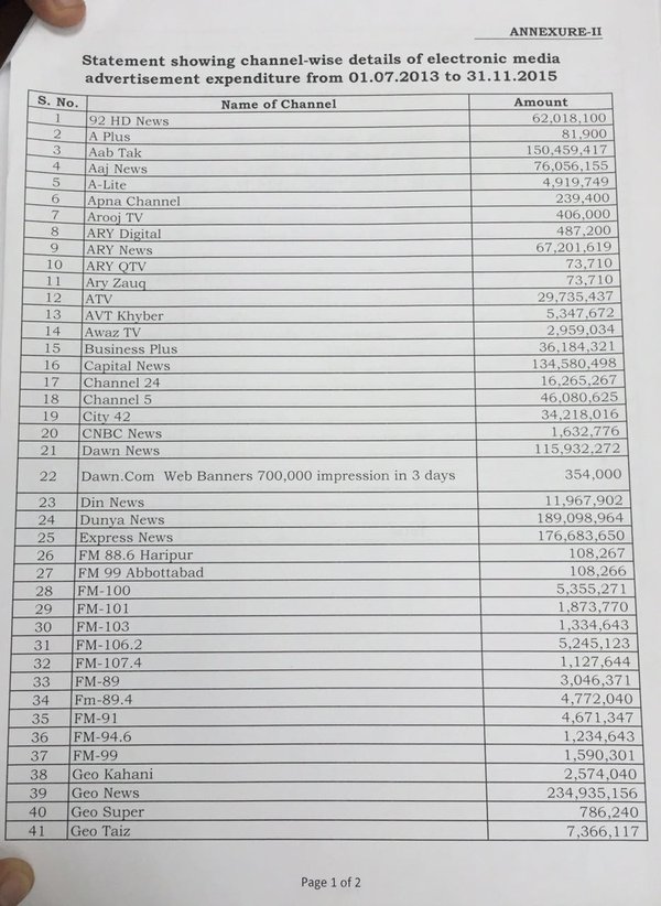 حکومت نے کس میڈیا گروپ کو کتنے اشتہارات دیے--