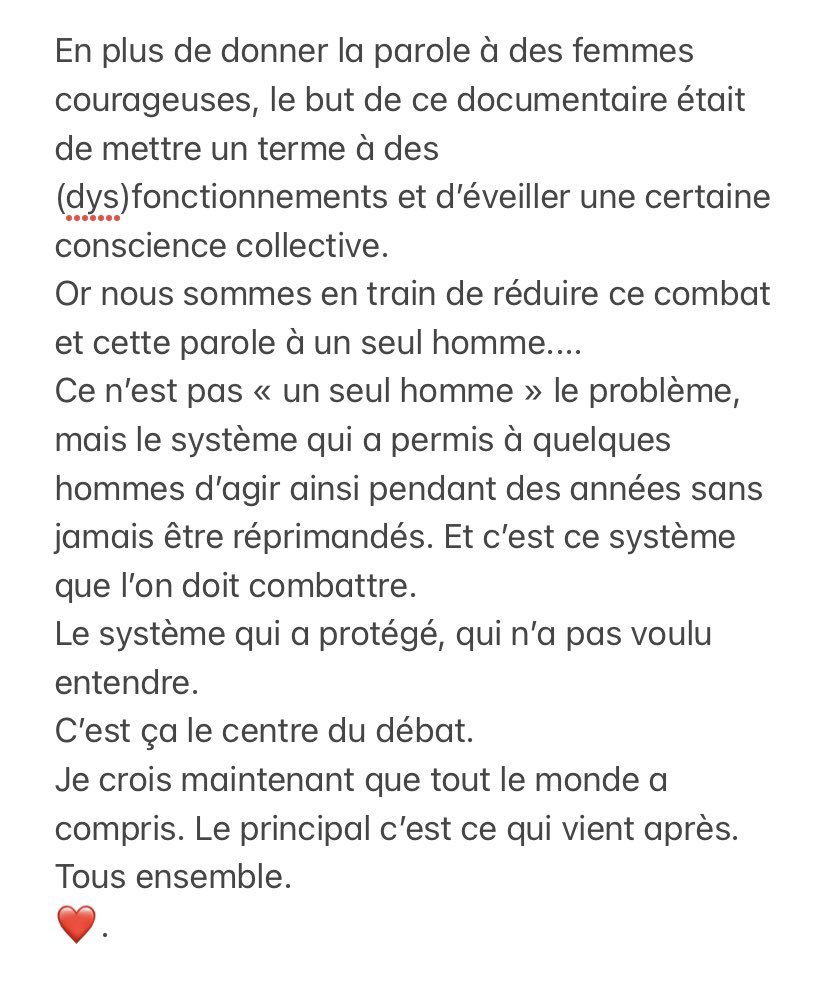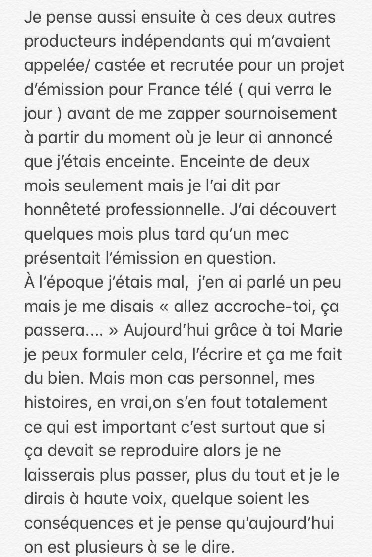 Merci pour votre soutien. À ceux qui me disent que j’aurais dû parler : je l’ai fait comme j’ai pu. Je suis allée voir la DRH, ça n’a rien changé. J’ai mis 1 an et demi pour retrouver du travail. Parler c’est compliqué, être entendue encore plus.
